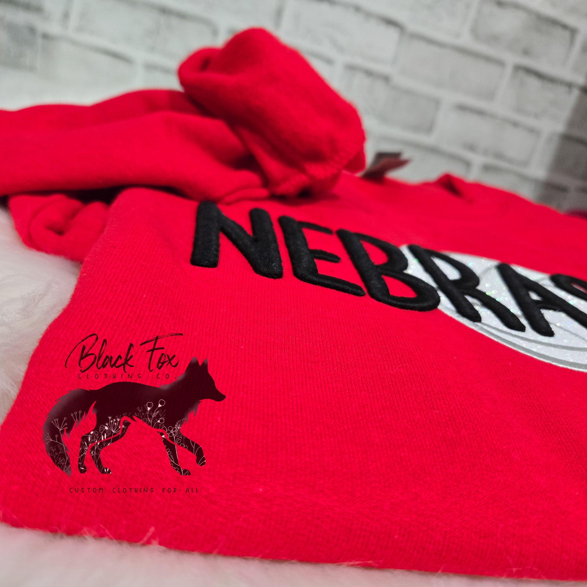 Handmade Embroidered Crewneck – 3D Puff Nebraska Volleyball | Black Fox Clothing Co