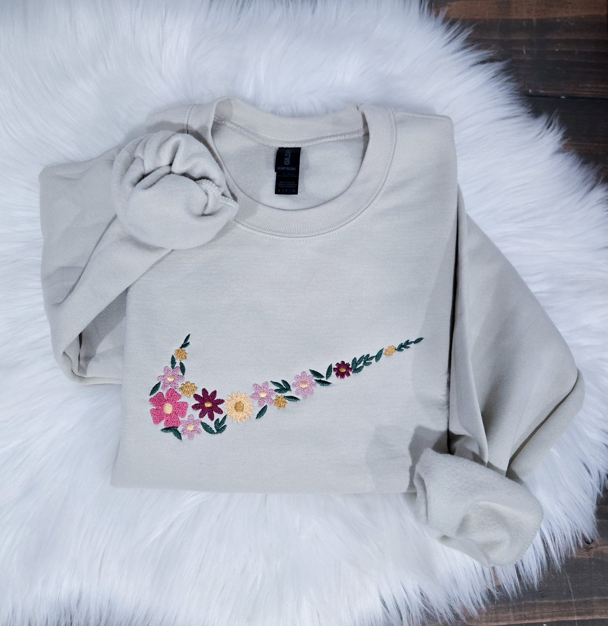Handmade Embroidered Crewneck – Floral Swoosh | Black Fox Clothing Co